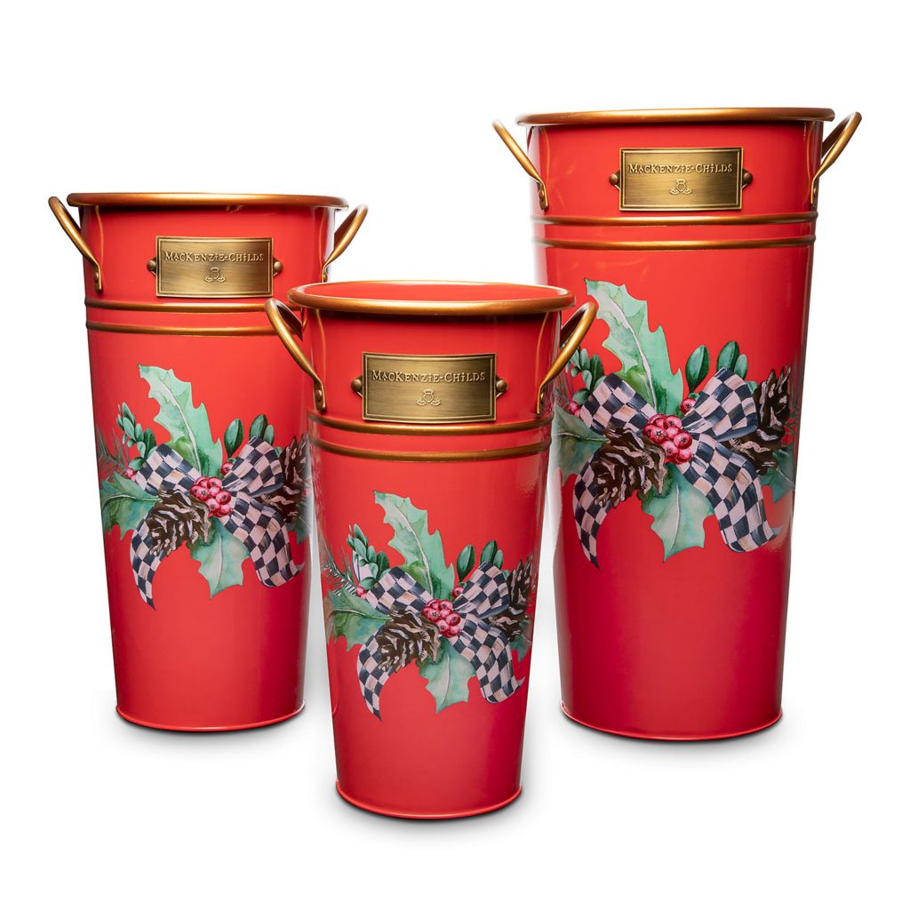 Mackenzie Childs Set Of 3 Holly Holiday Flower Buckets Shophq Com